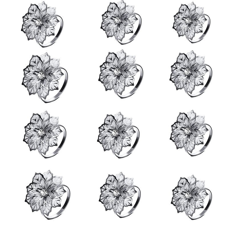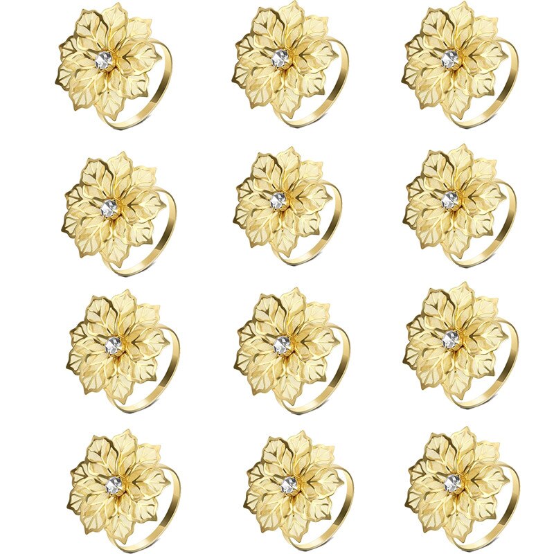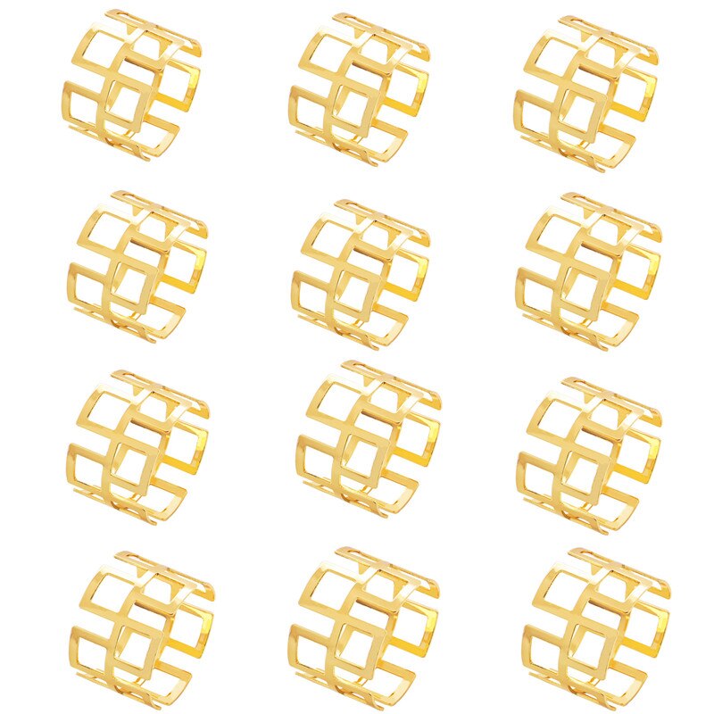 12pcs Back Pattern Wedding Napkin Rings Table Decoration Hollow Out Family Gatherings Everyday Use Napkin Buckle Holder