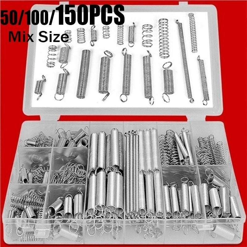 200/150/100/50Pcs Storage Box Accessories Extension And Compression Coil Portable Hardware Tool Spring Set Metal Steel Assorted