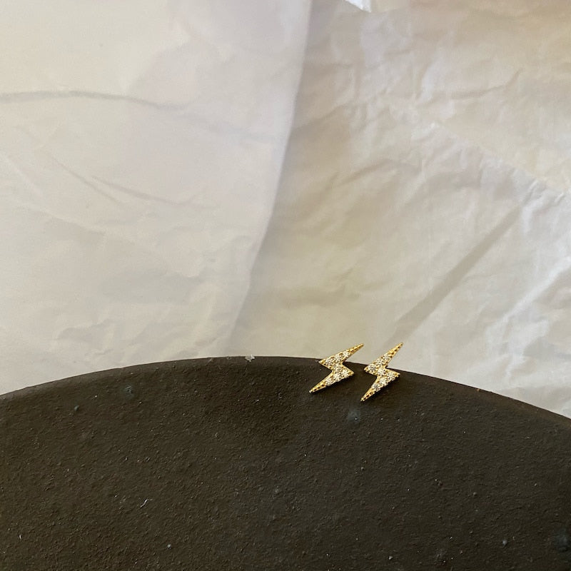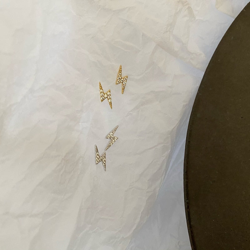 925 Sterling Silver Simple Fashion Pavé Crystal Lightning Stud Earrings Women Exquisite Student Girlfriend Jewelry Accessories