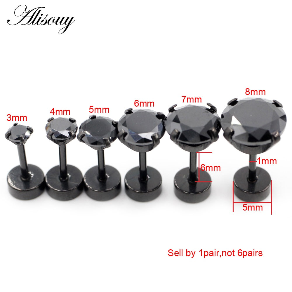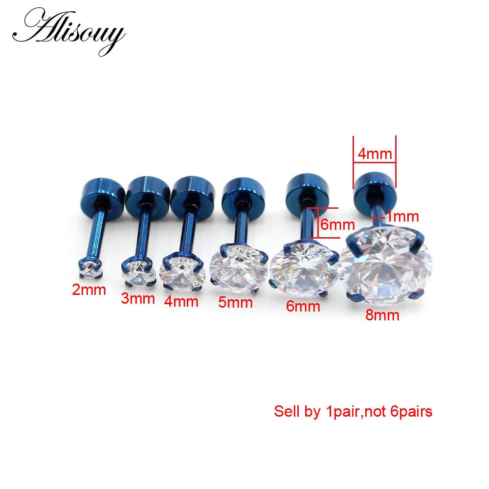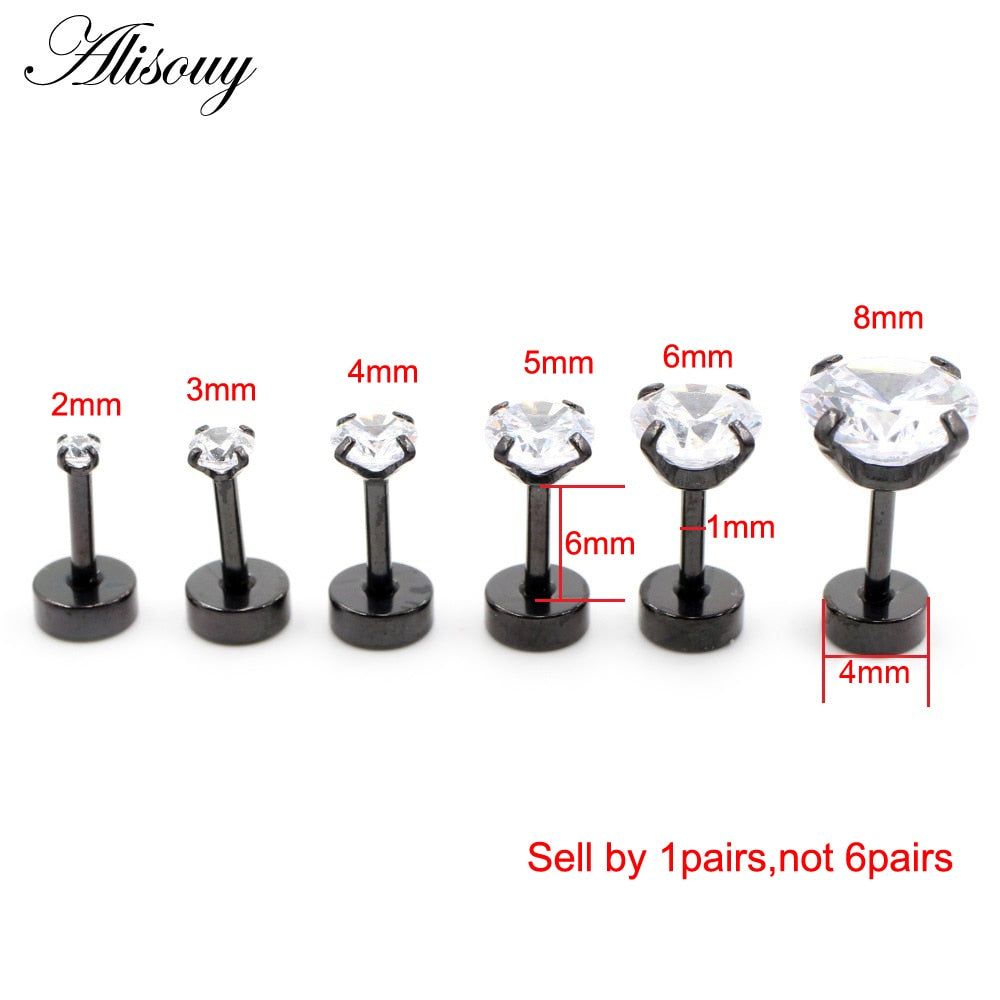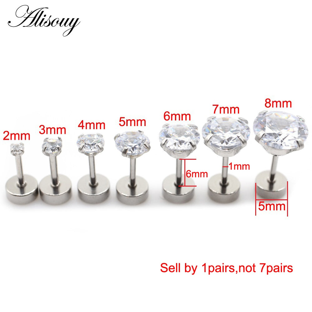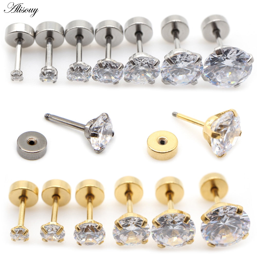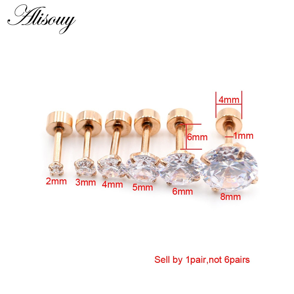 Alisouy 2pcs Stainless steel Unisex Women Men Round Crystal Zircon Ear Studs Earrings 4 Prong Tragus Cartilage Piercing Jewelry
