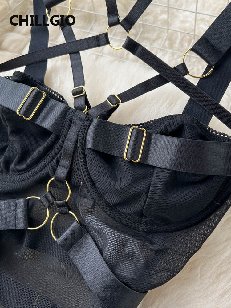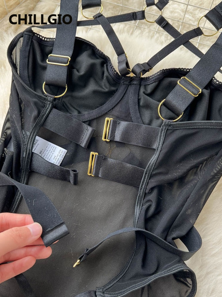 CHILLGIO Women Bodysuits Lingerie Sexy Fashion Sleepwear Hollow Combination Catsuits Slim Intimate Erotic Mesh Strappy Rompers