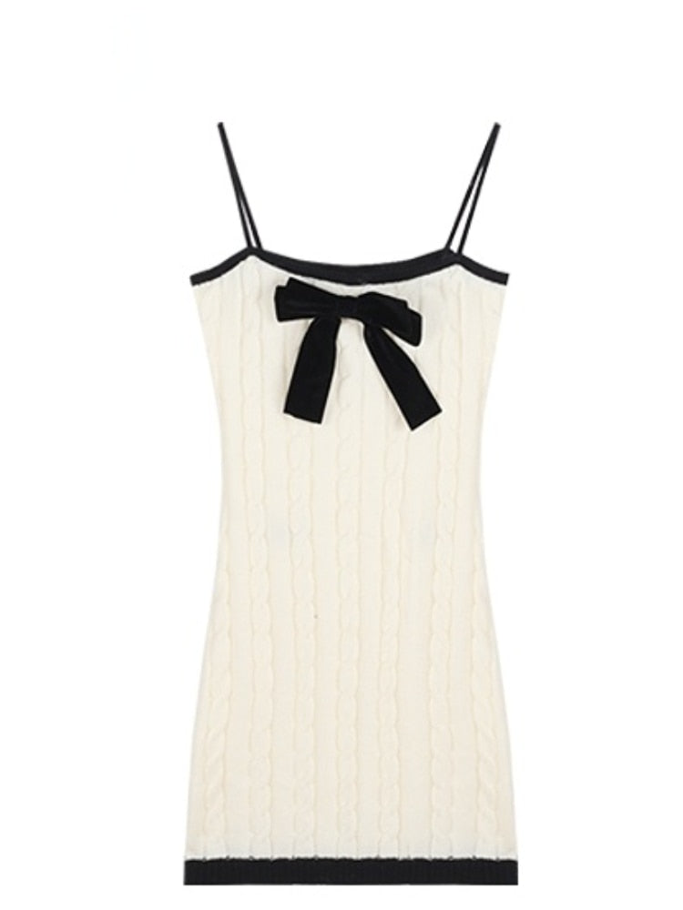 Elegant Knitted Two Piece Set Women Bow Designer Sweet Party Dress Set Female Korean Style Sweater Mini Dress Suit Winter 2022