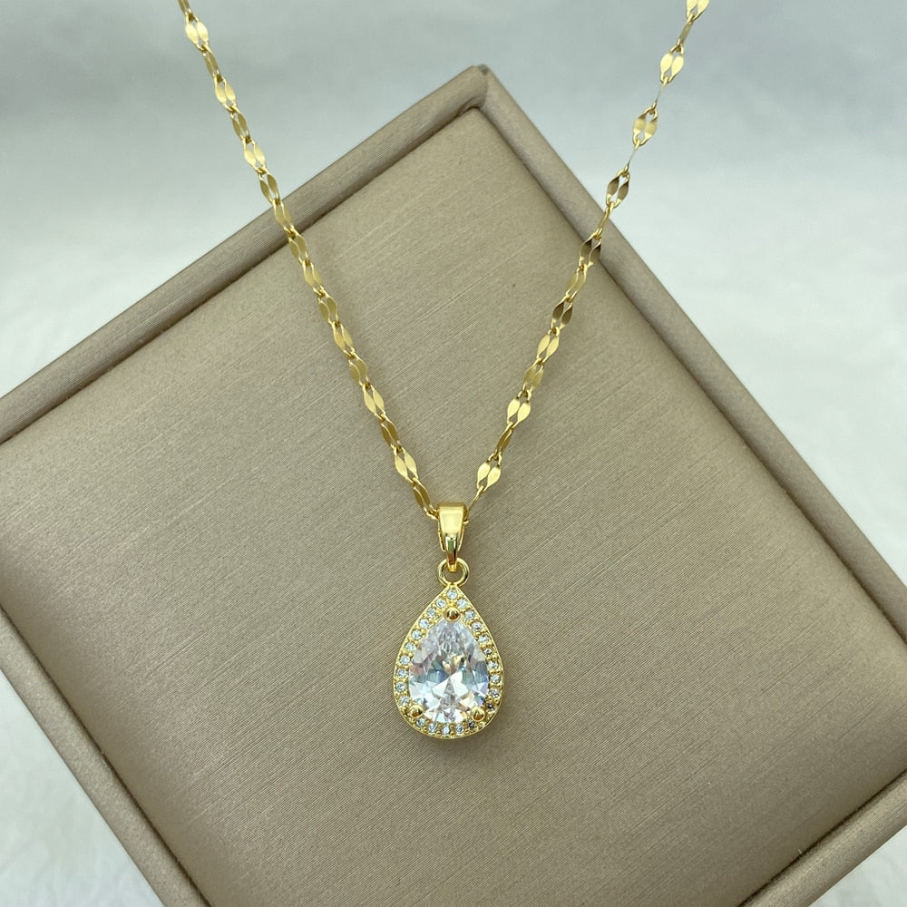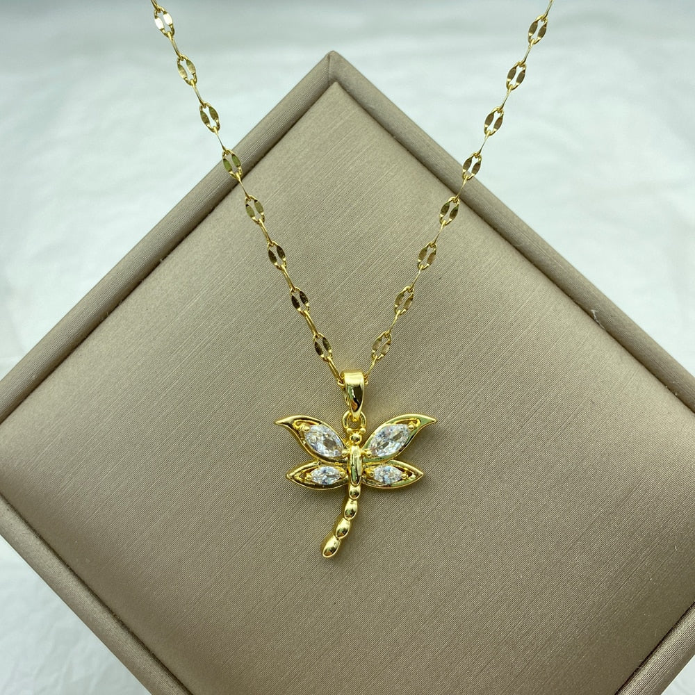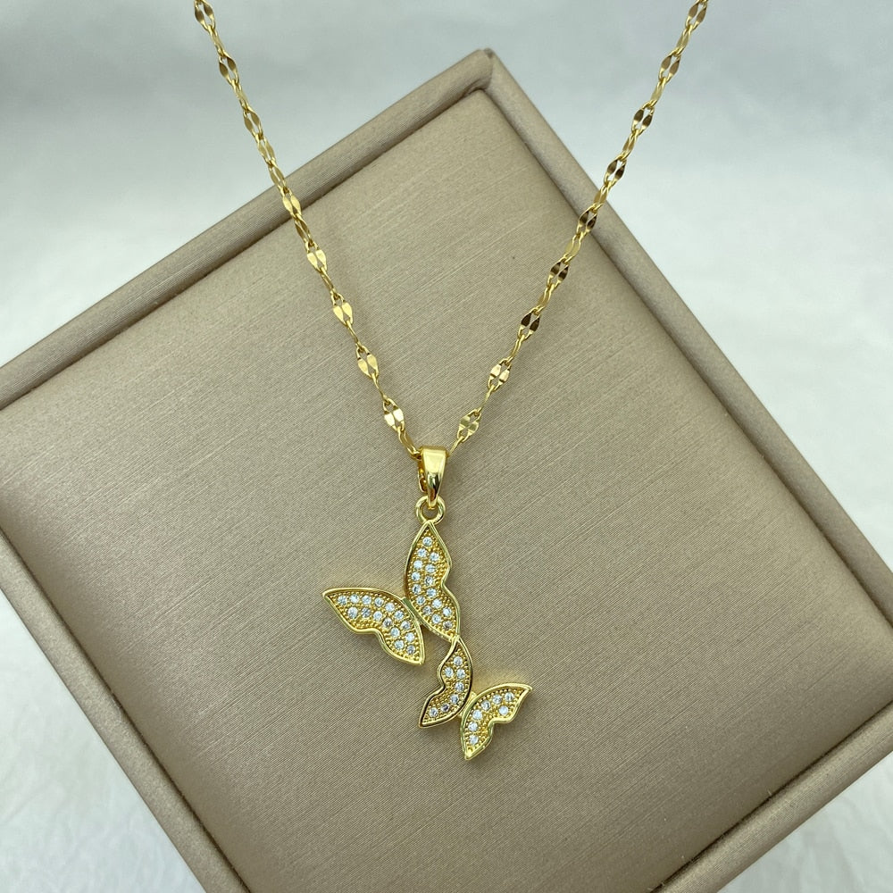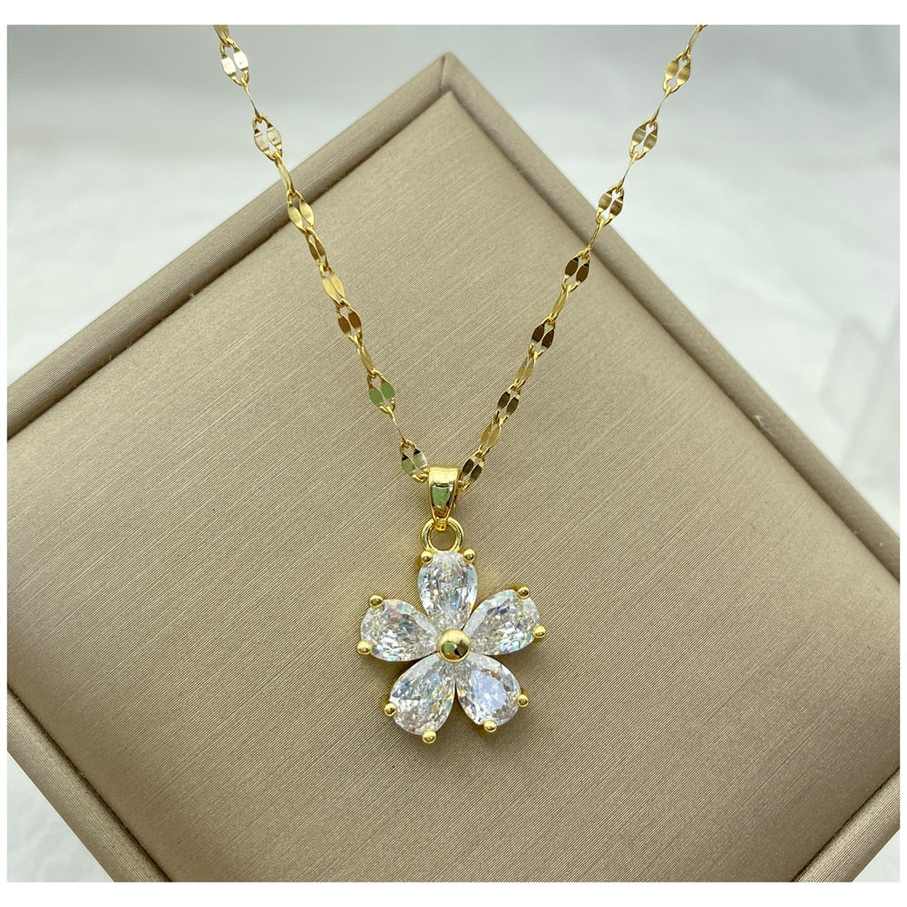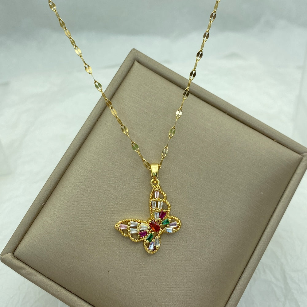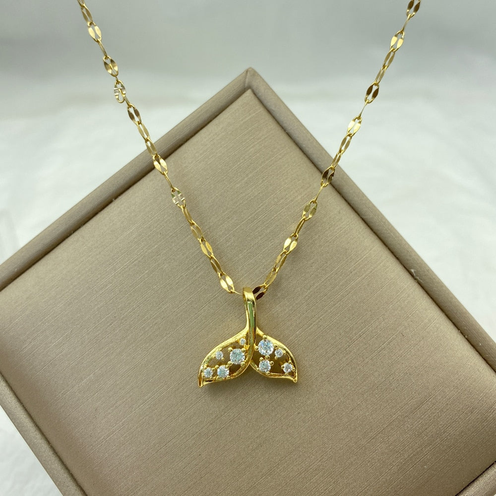 Gold Color Necklace for Women Zircon Jewelry Pendant Necklace Stainles Steel Mermaid Heart Butterfly Stainless Steel Sunflower
