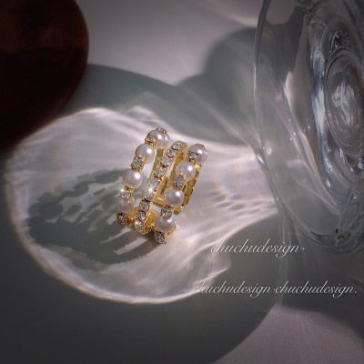 Luxury Zircon Gold Color Double Student Open Rings For Woman 2021 New Fashion Goth Finger Jewelry Wedding Party Girl's Sexy Ring