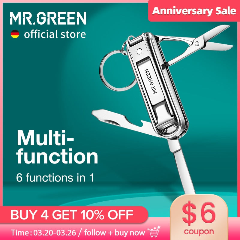 MR.GREEN Multifunctional Nail Clipper Stainless Steel Six Functions Nail Files Bottle Opener Small Knife Scissors Nail Cutter