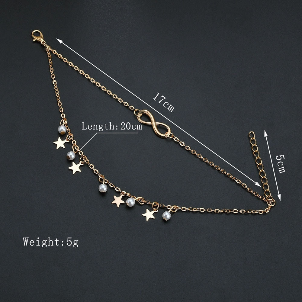 Simple Tassel Double Star Pearl 8 Word Female Anklet Barefoot Crochet Sandals Foot Jewelry New Ankle Bracelet Female Leg Chain