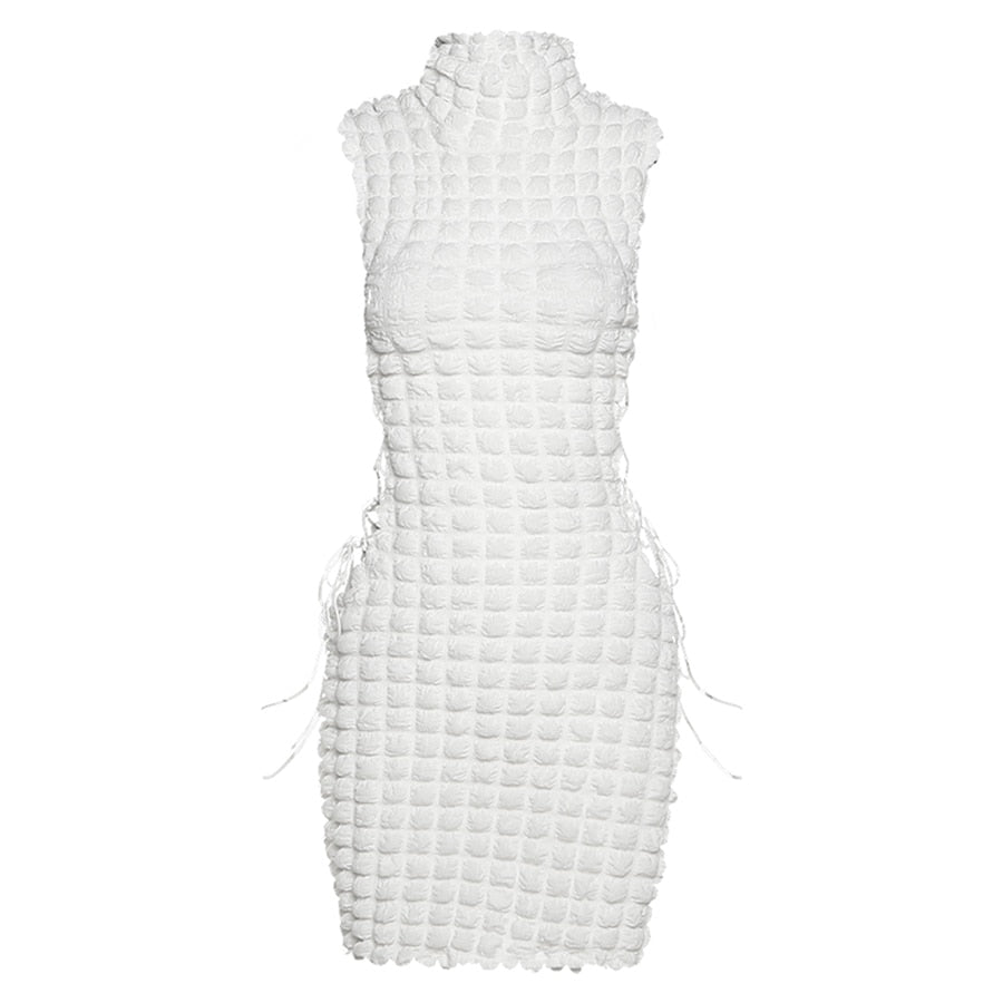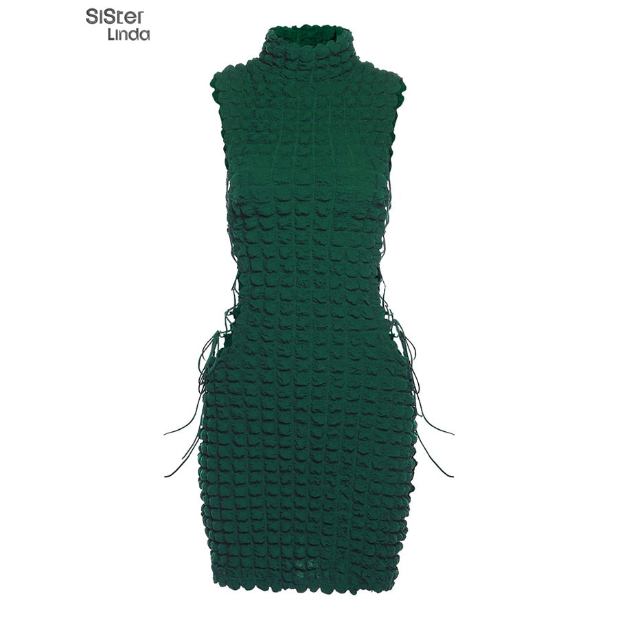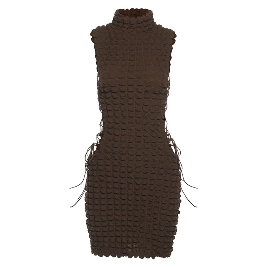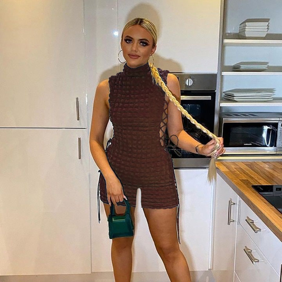 Sisterlinda Stacked Plaid Bandage Hollow Sexy Y2K Dress Women Sleeveless Turtleneck String Bodycon Party Clubwear Female Outfits