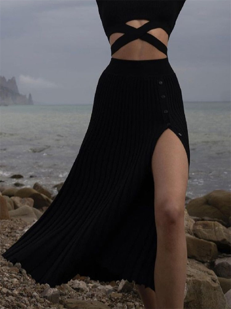 Tossy New White Knit Two Piece Women Sets Fall Ribbed Crop Top And Pleated Knitted Skirt Suits For Women Midi Dress Sets 2022