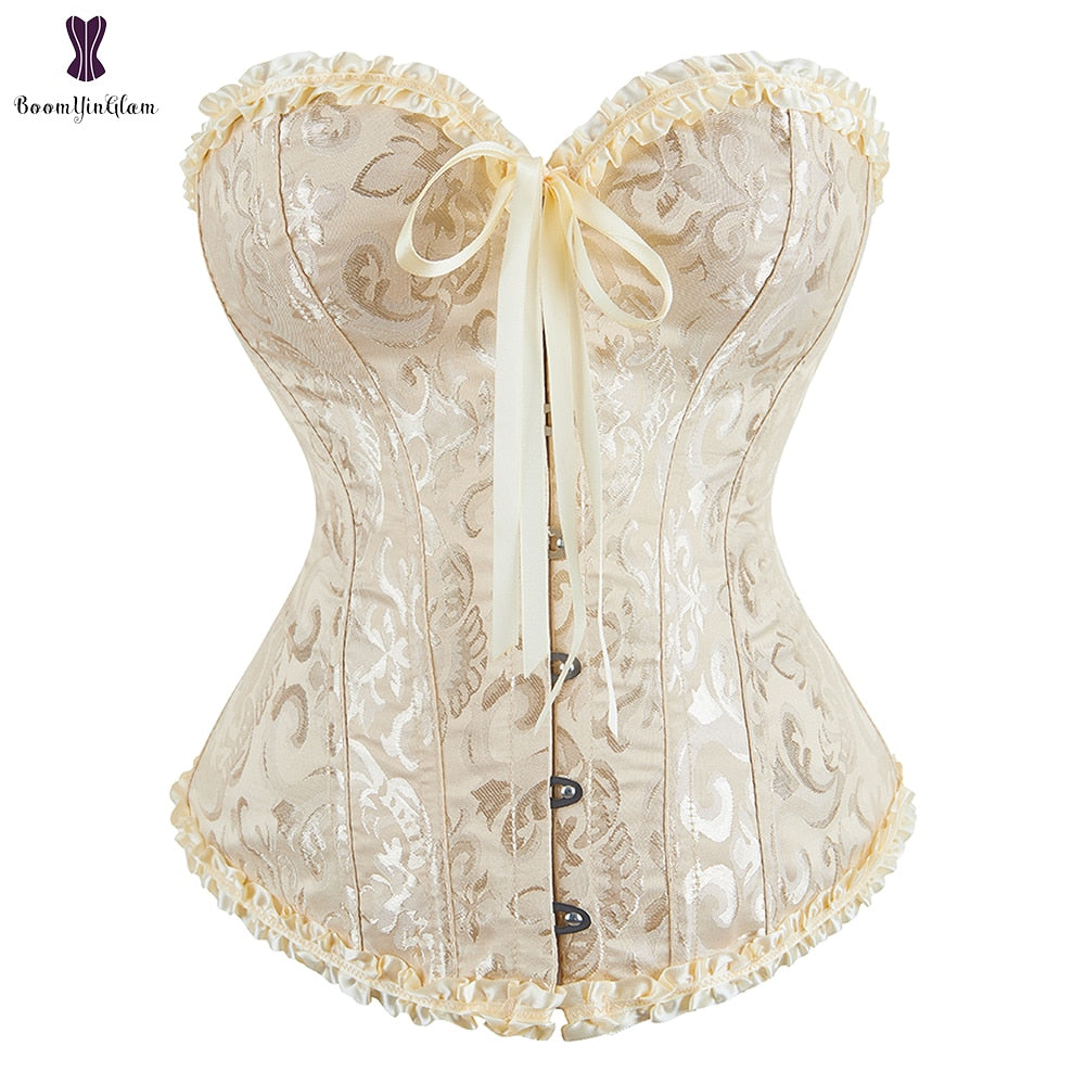 Yeşil kayısı kırmızı pembe Steampunk Korset kadın lengeries, çiçekli dantel kemikli korseler ve büstiyerler #810